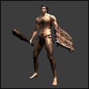 Armado solo con un garrote y un viejo escudo de tablas.