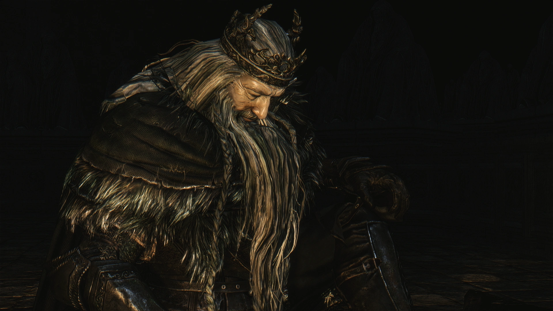 Una vez logró tal cosa, solo le siguieron una sucesión de fracasos y desdichas hasta que finalmente acabaría exiliado de su propio reino en una Cripta donde la Oscuridad lo consumía día tras día. Su deseo se había vuelto polvo, y pronto él le acompañaría, convertido en un hueco, que desnudo, vagaría en su propia tumba incapaz de reconocer a cualquiera que a su lado pasase. El rey que todo lo quiso y nada pudo, ese fue su destino, el de la eterna derrota. Aunque, ese haya sido el final de su historia, hay un ultimo suceso antes de su deceso.