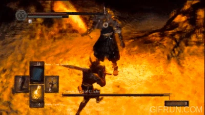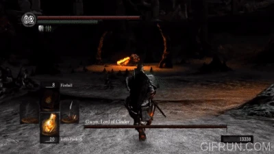 Gwyn rapidamente diminui a distância entre ele e o jogador , investindo com uma estocada. Geralmente também utilizado para impedir a restauração de sáude através dos estus.