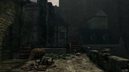 Можно пройти дальше под мостом. Впереди вас будет поджидать мечник и копейщик. Аккуратно проходим по краю, заходим в открытый проход. Спереди на вас побегут две крысы, ещё одна будет поджидать справа (лучше будет расстрелять их с моста). Убив их, можно подняться по лестнице и вы окажетесь в Уезде нежити, если не желаете сражаться с Виверной, но ворота к первому костру будут закрыты. Если вы хотите получить доступ к костру, то дракона придется убить или пробежать по мосту сверху.