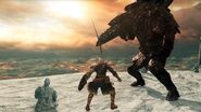 - Если возникли сложности с усиленными Железными воинами (идолы излечивают воинов), то можно их обойти: достаточно идти, упираясь в стену арены, на которой происходит бой с боссом. В этом случае они не реагируют на игрока и не вылезают из пепла, поэтому таким способом удобно добираться к костру (и от него) или уничтожать идолов без схватки с их защитниками.