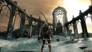 - Верхний этаж. После карниза с двумя пепельными воинами и сундуком, по коридору справа (перед закрытой дверью).