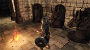 - Ходячие бочки с порохом более опасны для ваших противников, нежели для вас. Если бить их простым оружием, бочки не взорвутся. Детонация происходит от контакта с огнём (огненное оружие, пиромантия, стационарные ловушки, огненные стрелы и т.д.). Очень выгодно использовать их для уничтожения безголовых железных воинов: из наплечников у них периодически вырываются струи огня, которые могут подорвать бочку и убить их самих.