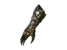 Про эти жутковатые на вид наручи слагают легенды, поскольку они созданы из чешуи черного дракона. Долгое время считалось, что черный дракон- просто миф, но эти наручи доказывает обратное.
