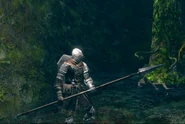 Сад Тёмных Корней. Копьё лежит на трупе, который сторожит древесная ящерица. Чтобы найти труп, пройдите большой белый туман и сверните сразу налево. Осторожно, сзади появляется Энт. Вы можете увидеть его в виде куста, когда сворачиваете в проход.