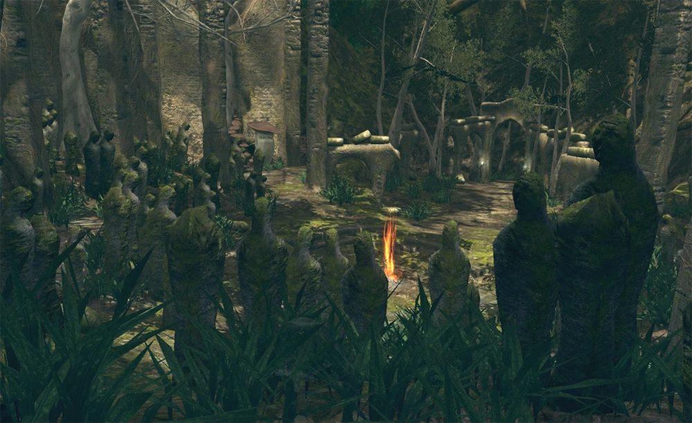 - В этой локации есть Костер, что немаловажно, так как следующий находится в поселке Олачиль, а на пути к нему много сложных противников и Арториас.