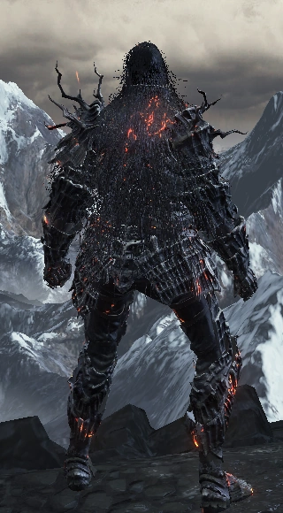 Костяная броня темного духа, реликвия из маленькой страны, некогда попавшей под влияние тьмы. Выглядит так, словно в любой момент может рассыпаться в прах. Темные духи - это самые старые из краснооких захватчиков, ходят слухи, что они служили первозмею.