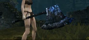 The Golem Axe is on the heavier end of Axes, and has a slow swing. It has high damage, but cannot be enchanted. Its strongest trait, though, is its versatility. It is both a melee weapon and a ranged weapon. Furthermore, its ranged attack will inflict "melee" type damage, inflicting both health and serious Poise damage: enough to stagger most opponents. The ranged attack is also relatively fast, and will often take opponents by surprise. However, while the blast travels fast, the wind up to the special attack is quite long in comparison. Despite this, the special attack can be used faster than a lot of sorceries, also interrupting the caster. The Golem Axe comes with a dozen "charges" before requiring repairs.